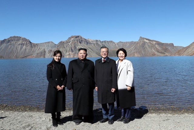 This picture of two leaders from south and north Korea at the top of BaikDu Mountain is very special and important gift to Koreans on this happy annual Korean Thanksgiving day who are longing for reunification. They were living in 70 years of separation. But they had lived together for 7,000 years.