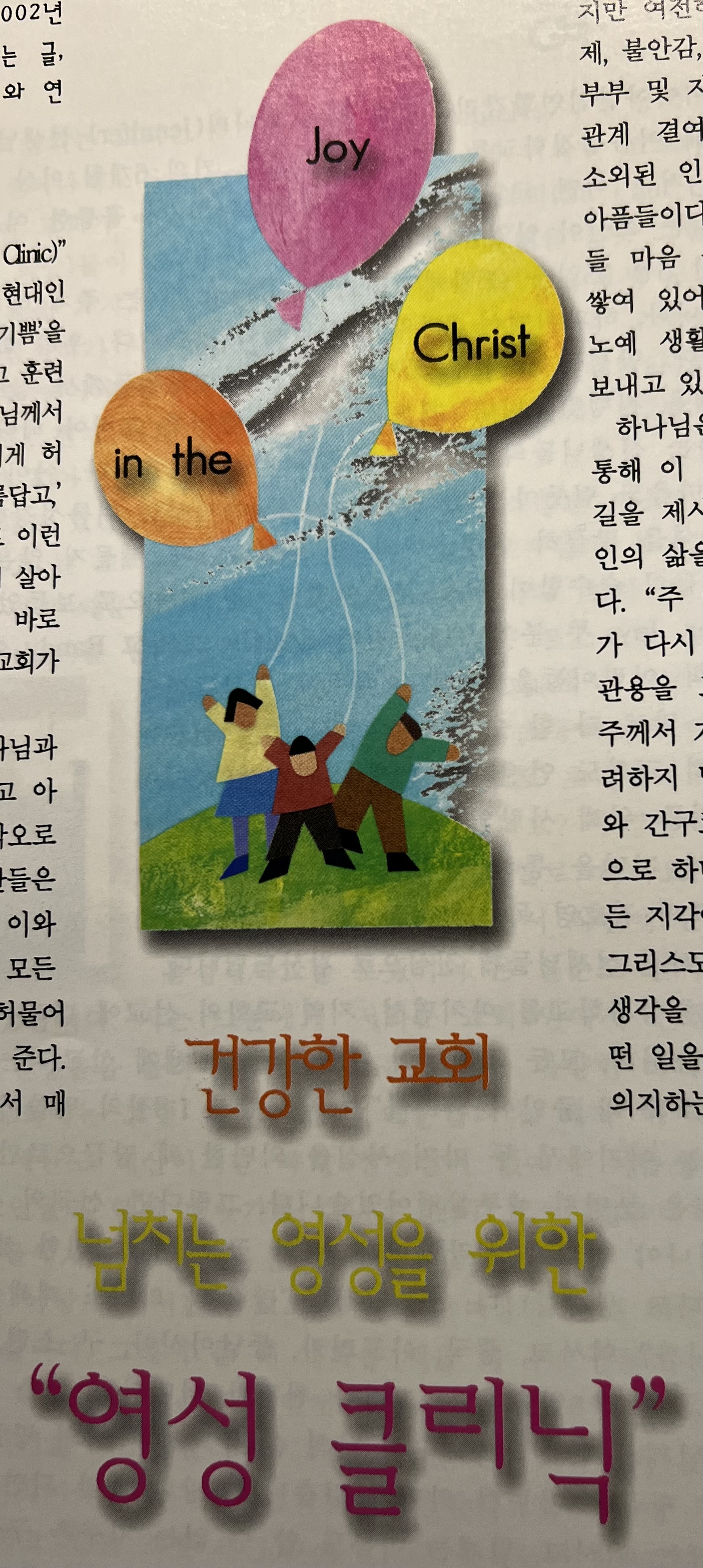 “영성 틀리닉”이 추구하는 것이 바로 이것이다. 그리스도 안에서 우리가 자유인이 되고 기쁨과 행복을 누리면서 살도록 돕고자 하는 것이다. 소그릅 형식으로 일정기간 훈련 받고 생활에 적용하면, 그르시도의 마음을 통해 하나님이 주시는 기쁨의 샘물이 터져 나온다.
