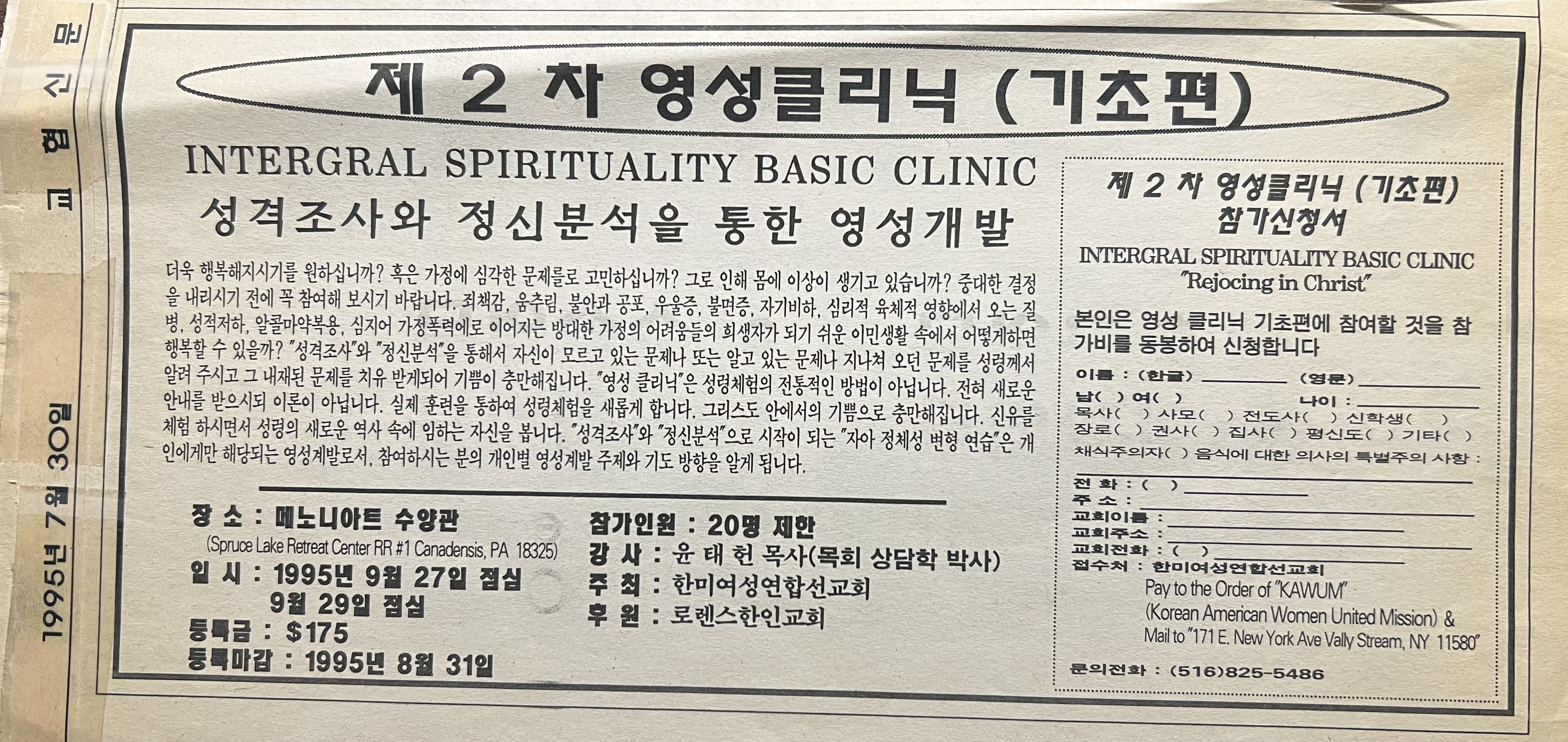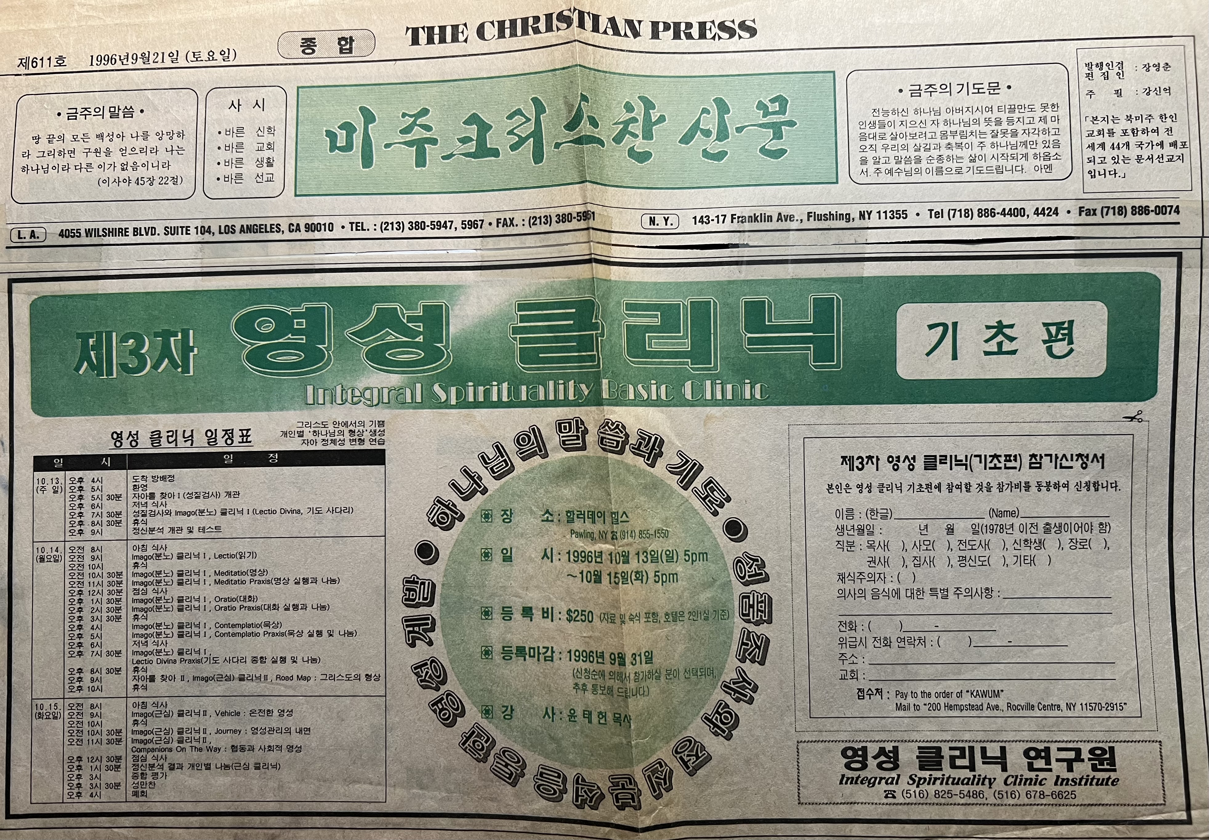 이러한 상황에서 영성 클리닉은 살아 있는 하나님 체험과 전인적 영적 변화를 중심에 두고, 성도들의 온전한 삶과 기도의 균형을 회복하기 위한 새로운 대안적 훈련 프로그램입니다. 이 프로그램은 교회가 성도의 내적 분열 문제를 인식하고, 이를 회복하는 방향을 지향하는 데 목표를 두며, 교회를 새롭게 변형시키기 위한 “변형연습(Transforming Praxis for Ecclesiogenesis)”을 담고 있습니다.