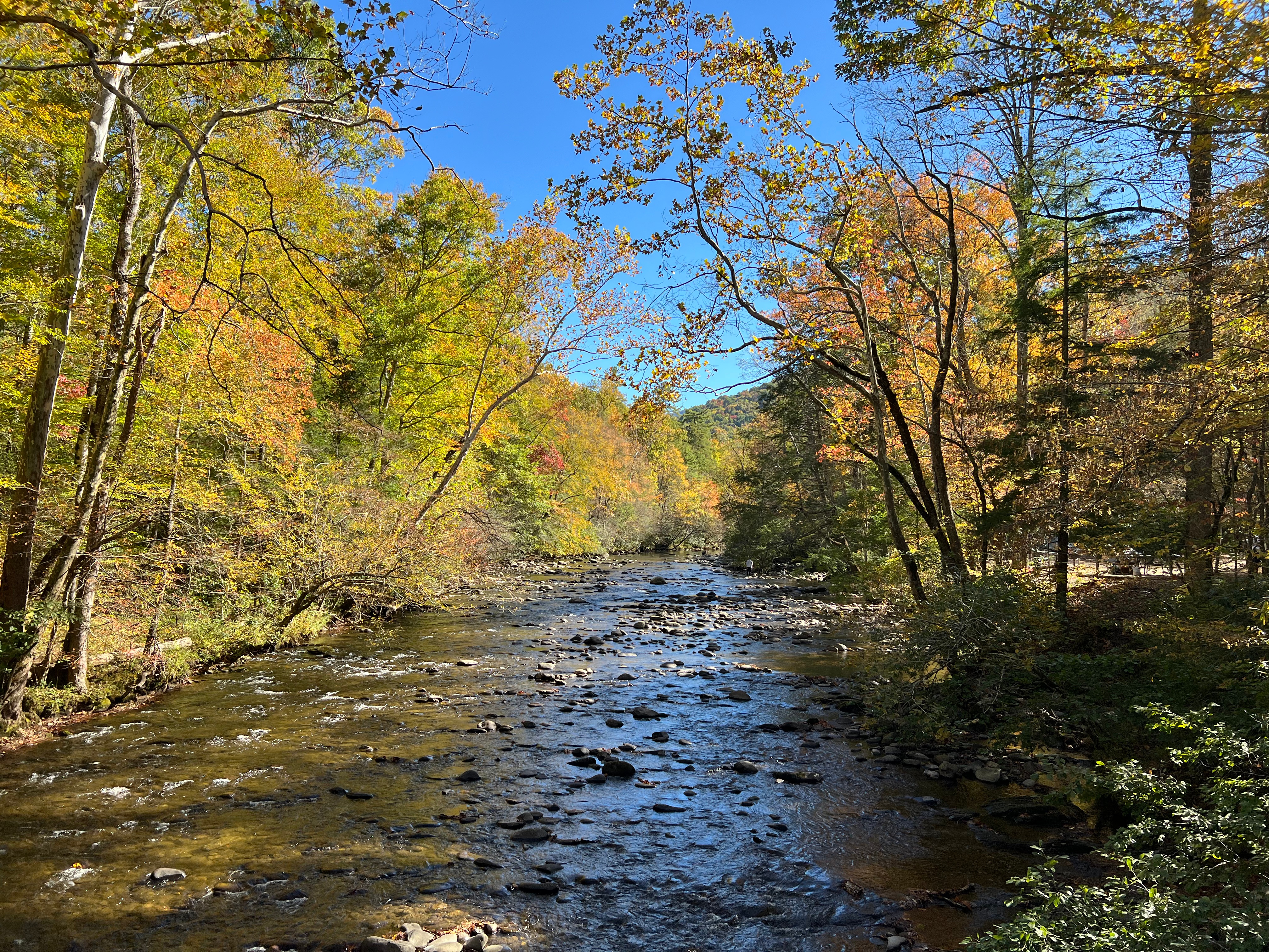 Stone, water, people, reeds, and river
