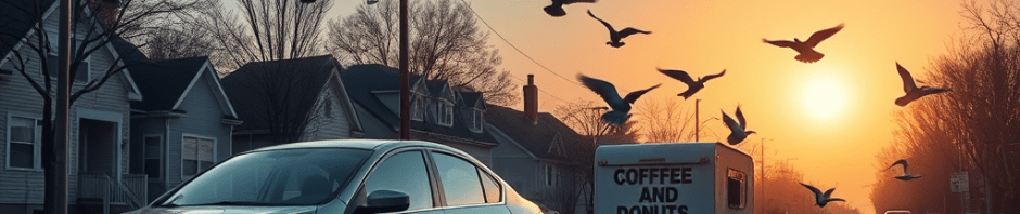 It was a gray sedan pulling a small trailer with a sign that read, “Coffee and Donuts for Sale.” Inside the trailer, aluminum shelves held small glowing bulbs that made one instantly think of hot coffee and warm donuts.