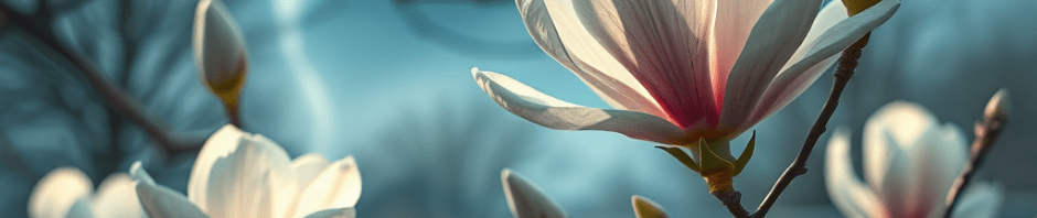 마침 활짝 피지 않은 뒷마당 매그놀리아가