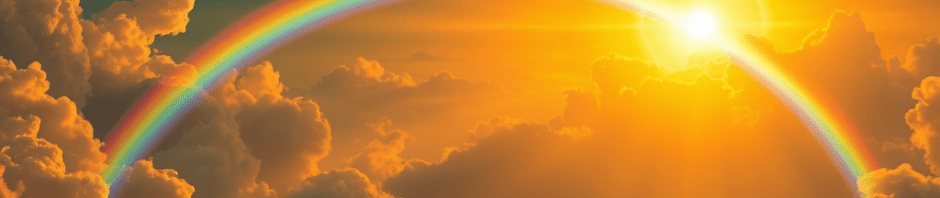 a rainbow bridge painted across the open sky,