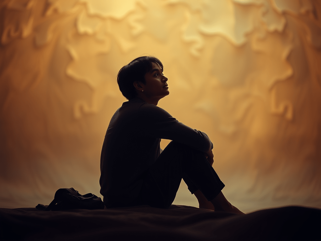It echoes in the quiet folds of memory, a fragile thread unraveling through the noise of becoming.